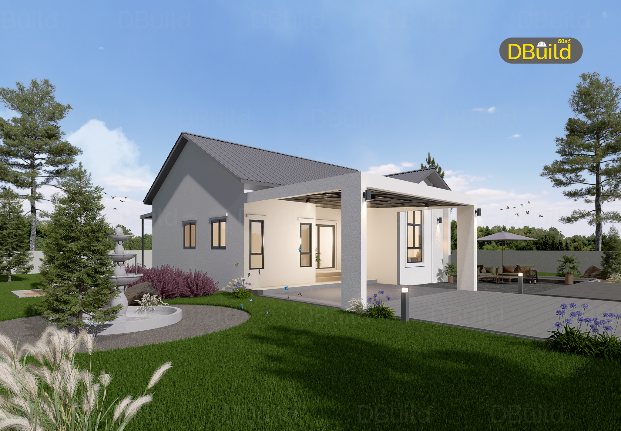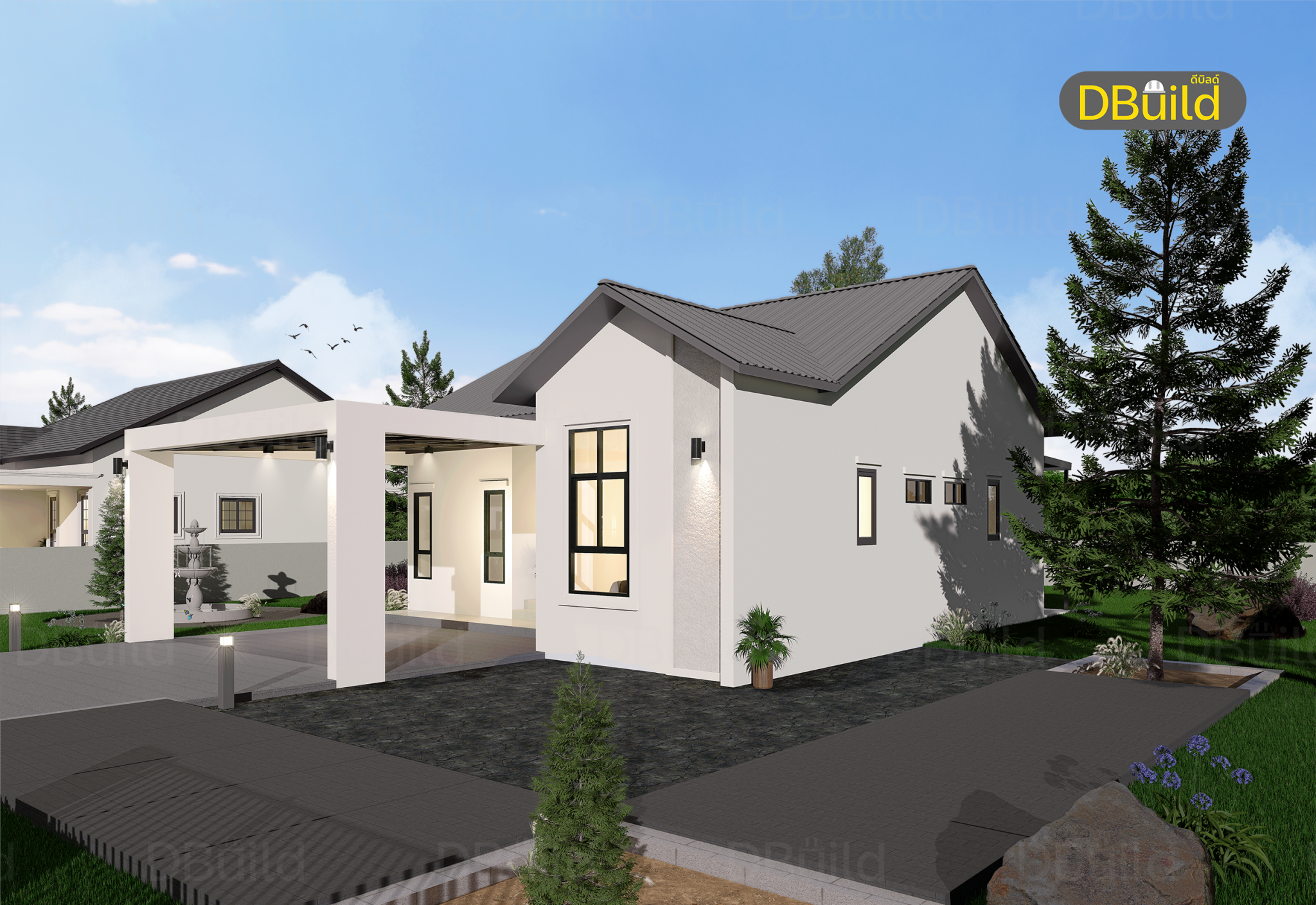แบบบ้านชั้นเดียว 1 ชั้น 3 ห้องนอน 2 ห้องน้ำ จอดรถได้ 2 พื้นที่ใช้สอย 141 ตารางเมตร