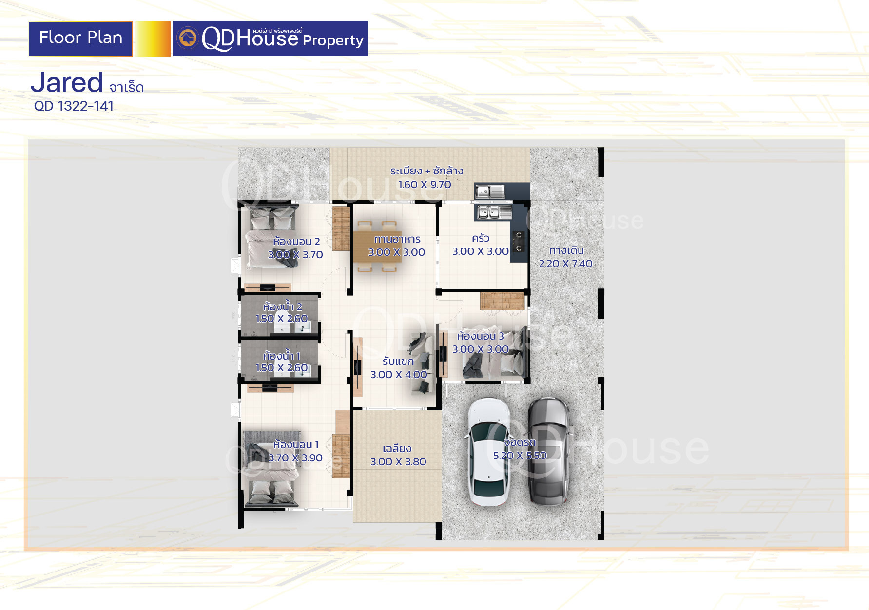 QDHouse บ้านเดี่ยวเชียงใหม่ โซนสันทราย พื้นที่ใช้สอย 143 ตารางเมตร | แบบบ้าน JARED